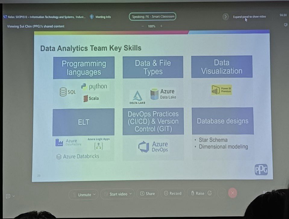 - PPG Industry is an American supplier of paints, coatings and special materials that operates in more than 70 countries globally including Malaysia. From the talk, I learned that in the industry the project data is very large and complex which is very different from the university assignment where the data is simple and there are only a few columns and rows. One of the speakers advised us that technical skills are not enough to survive in industry, understand the processes, collaboration is important too. I realized that there are many things I need to improve before entering the industry and hope I can prepare all of that while at university. For the assignment, everything went smoothly we divided the tasks to each one, i am grateful to be able to complete this poster well within the specified time.